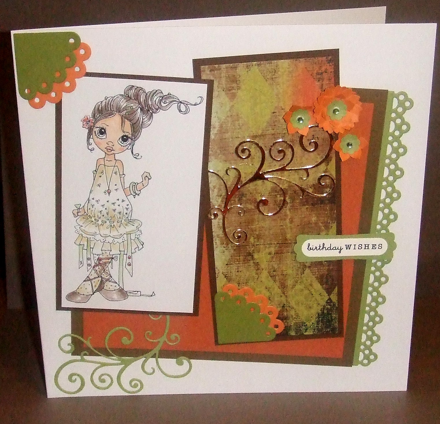 Using up some scraps of brown, green and orange that I found whilst tidying one small corner of the craft room!